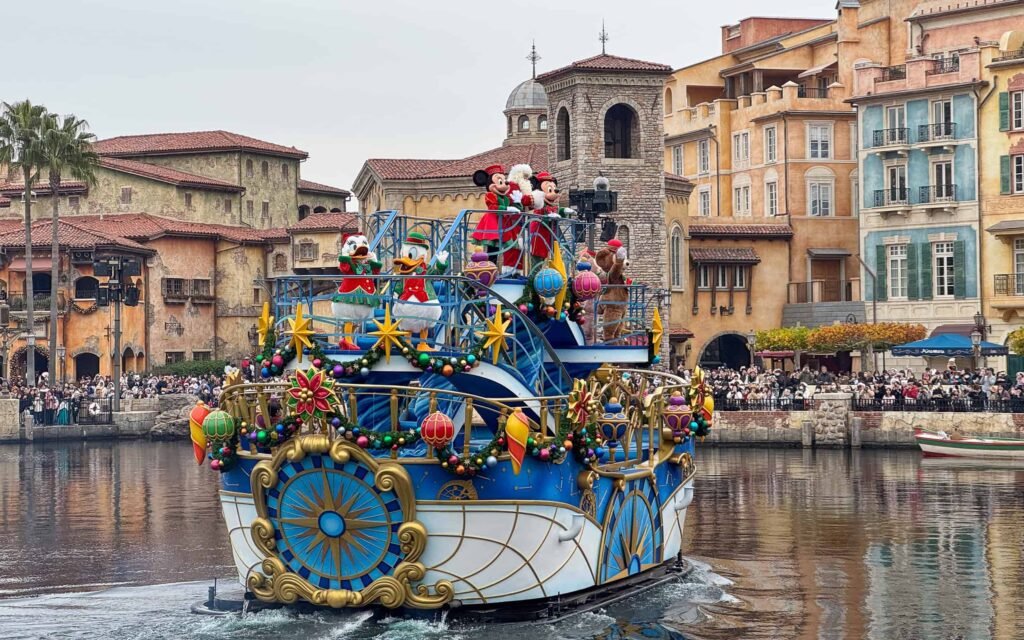 Each season brings a different Harbor Greeting to DisneySea. These days, sadly, this consists of only one boat/float looping around Mediterranean Harbor for 15 minutes, with characters and a catchy tune.