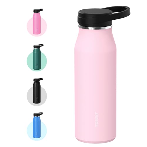 TOURIT 32 oz Insulated Water Bottle, Stainless Steel Sports Water Bottles With Wide Mouth, BPA Free Leakproof Thermos Bottle for Sports and Travel, Pink